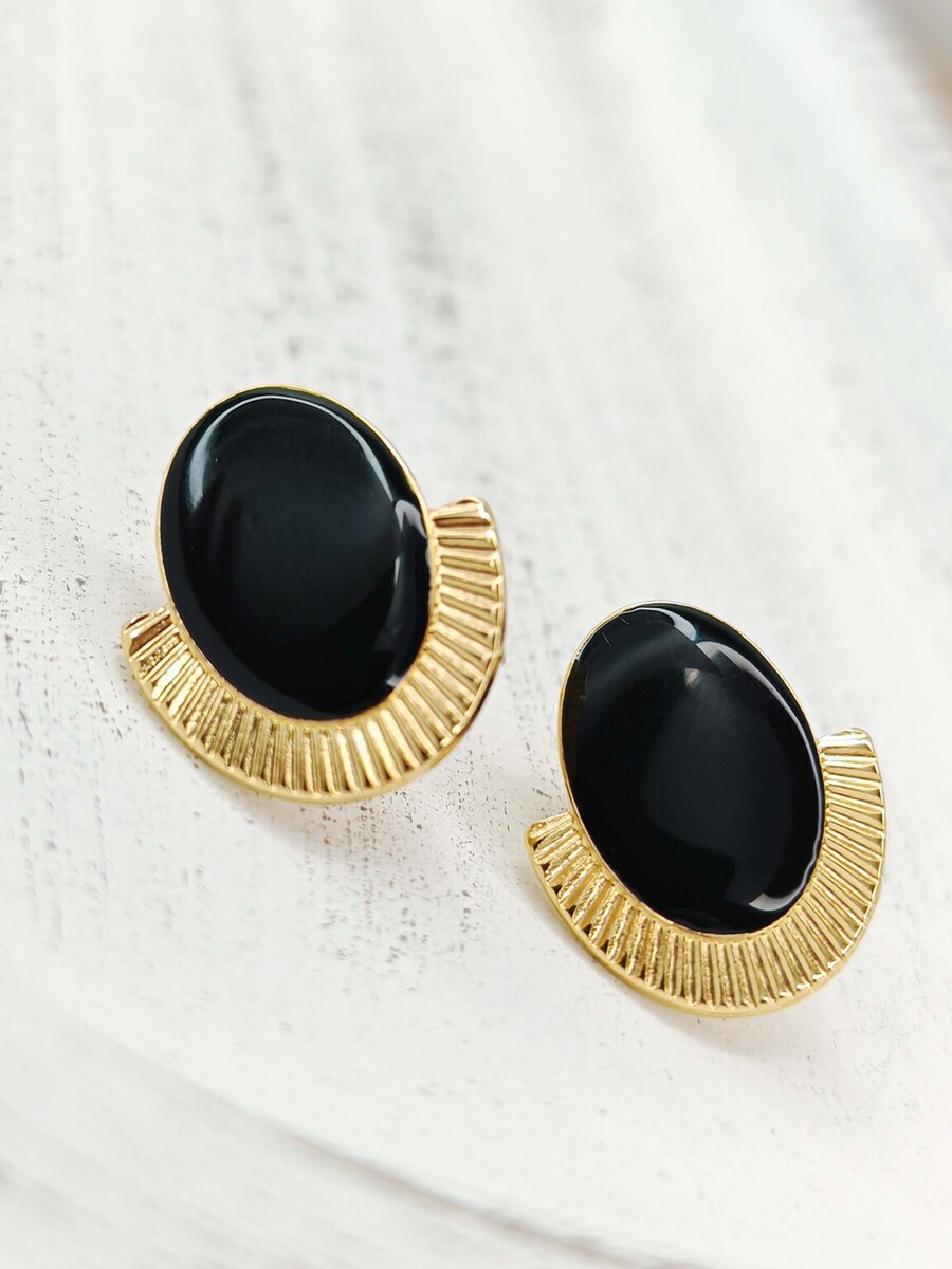 Σκουλαρίκια από ορείχαλκο επιχρυσωμένο με σμάλτο μαύρο και καρφί από τιτάνιο, πολύ όμορφα από κοντά θα ξετρελαθείτε