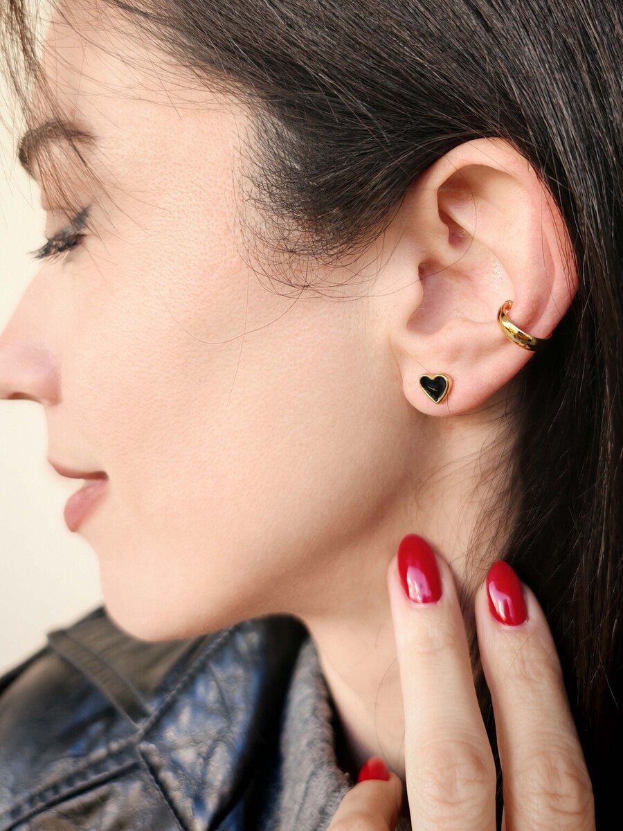 Σκουλαρίκια από ορείχαλκο επιχρυσωμένο με σμάλτο μαύρο και καρφί από τιτάνιο.