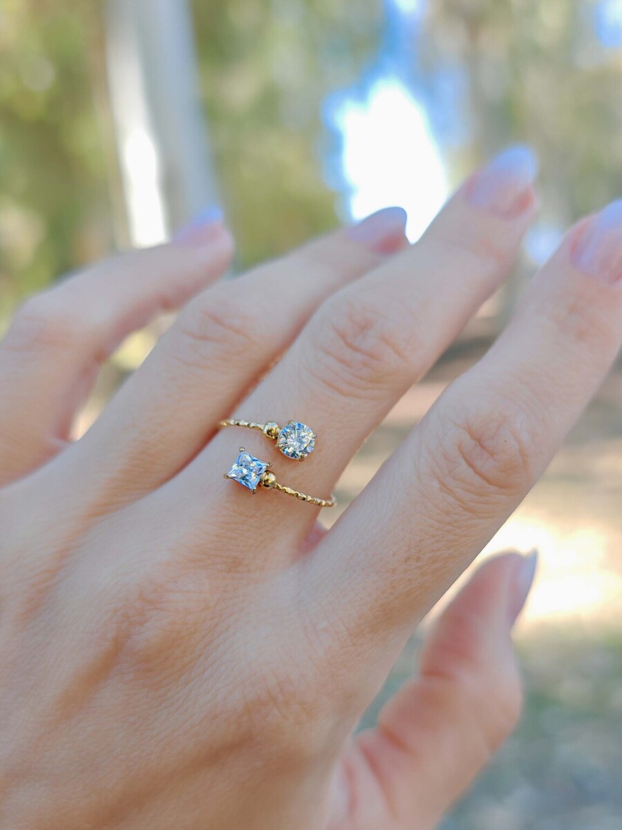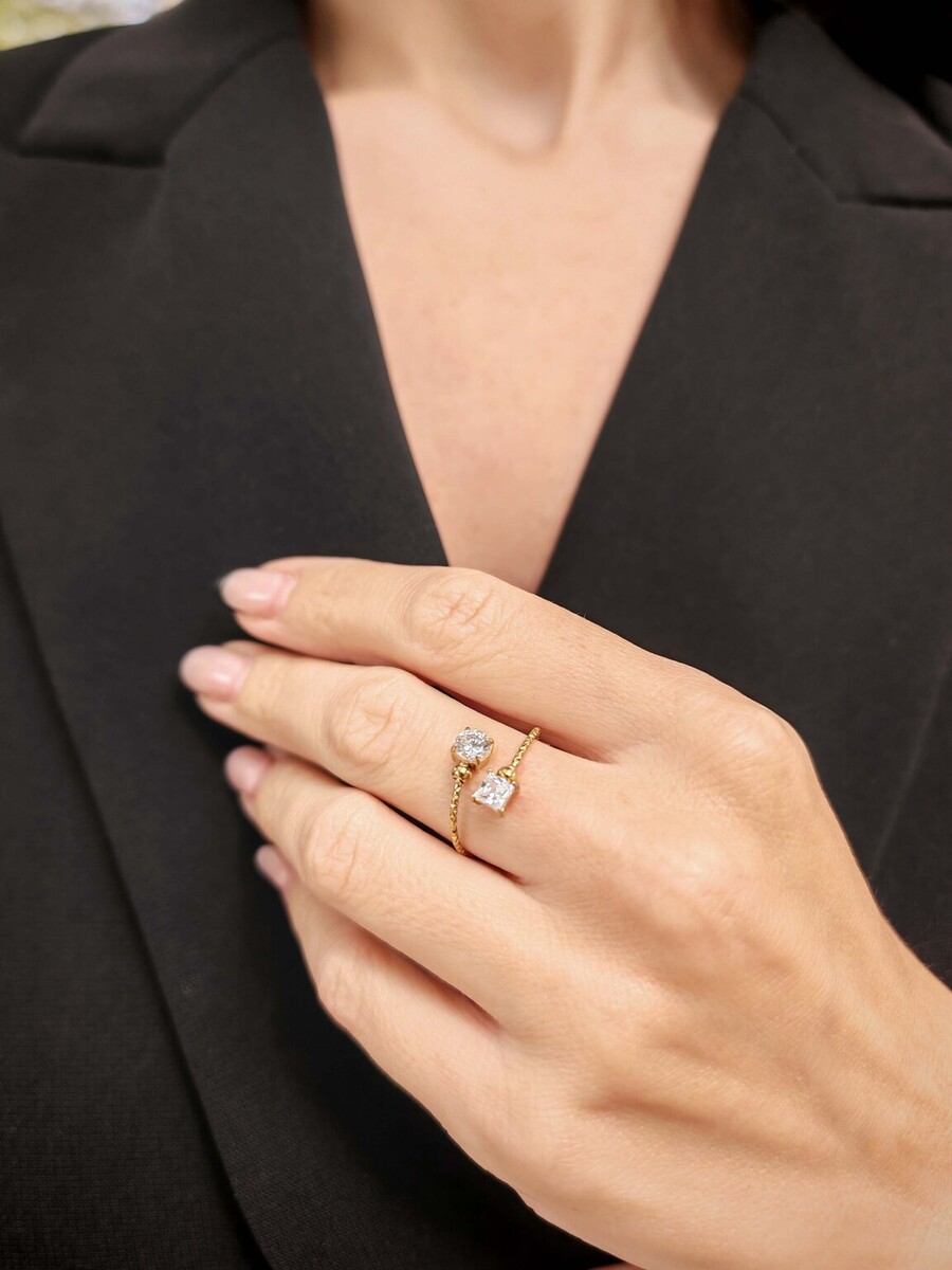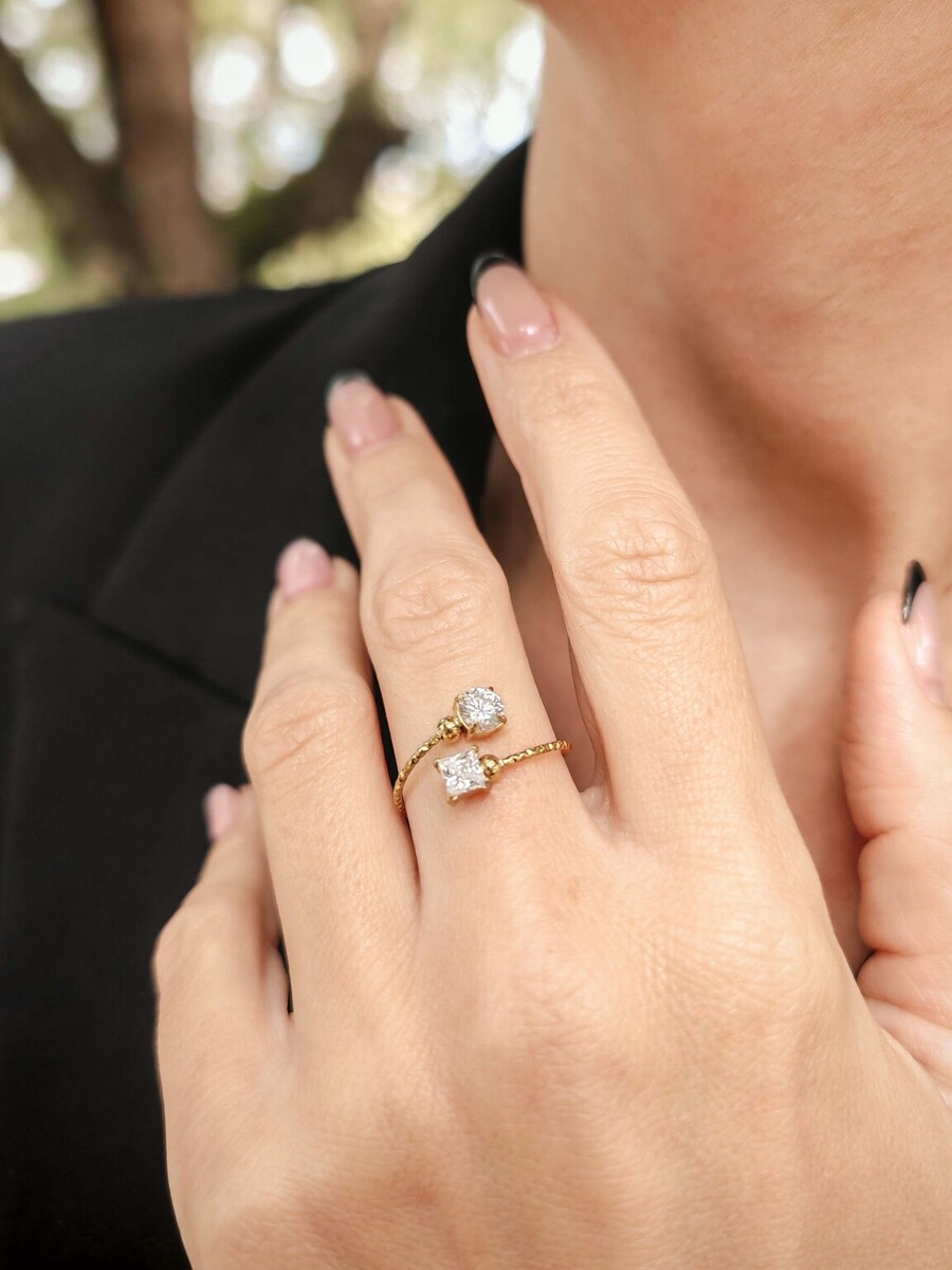 Ατσάλινο δαχτυλίδι επιχρυσωμένο με κρύσταλλα, με δυνατότητα ελαφράς αυξομείωσης