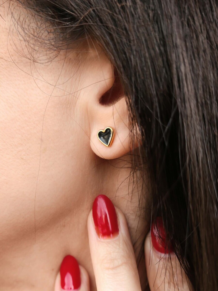 2 Σκουλαρίκια καρδιές από ορείχαλκο επιχρυσωμένο με καρφί από τιτάνιο