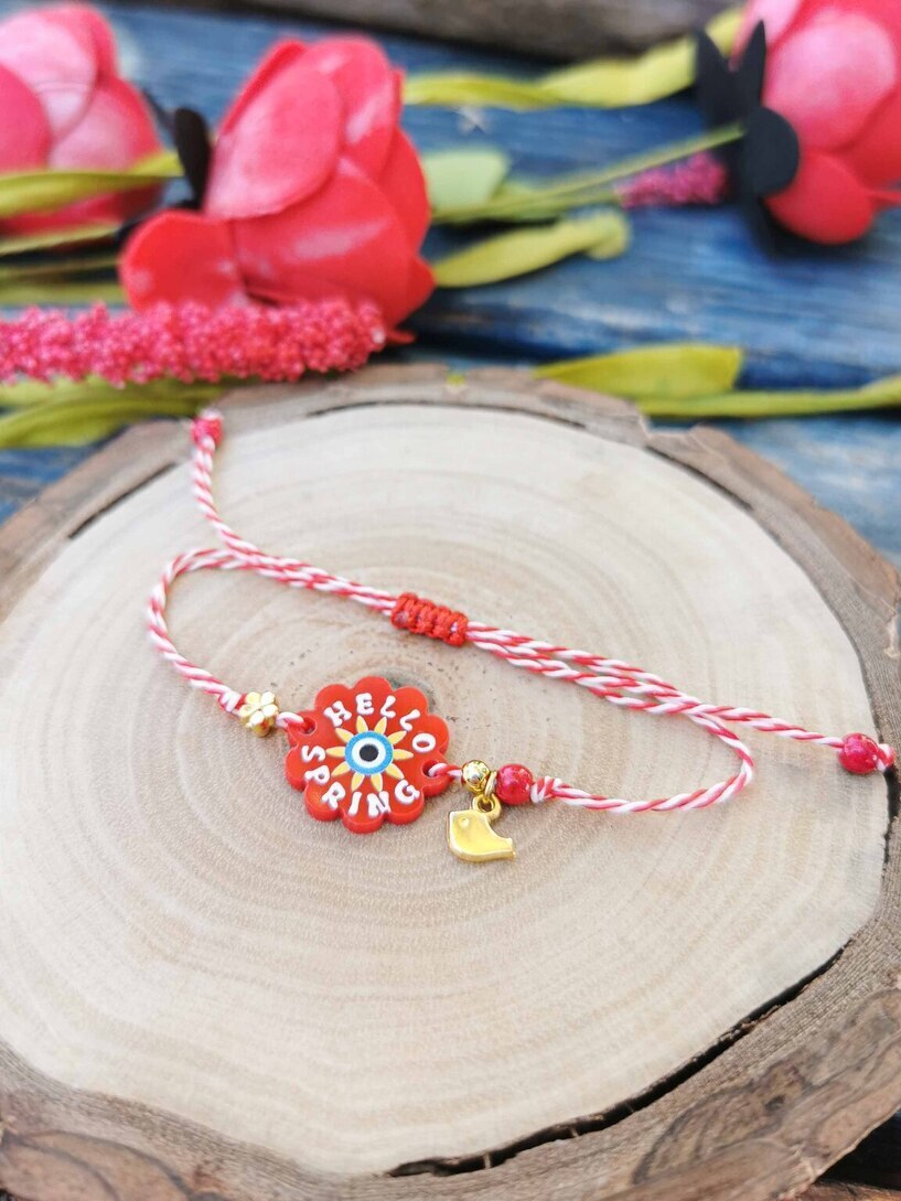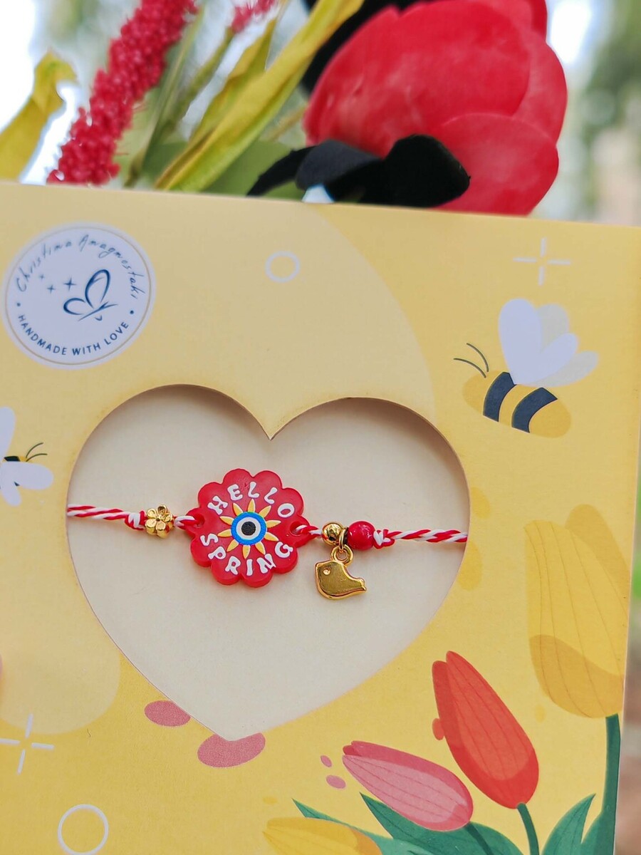Πλέξι γκλας μαργαρίτα με μήνυμα "Hello spring" και χρυσά στοιχεία από ορείχαλκο επιχρυσωμένο