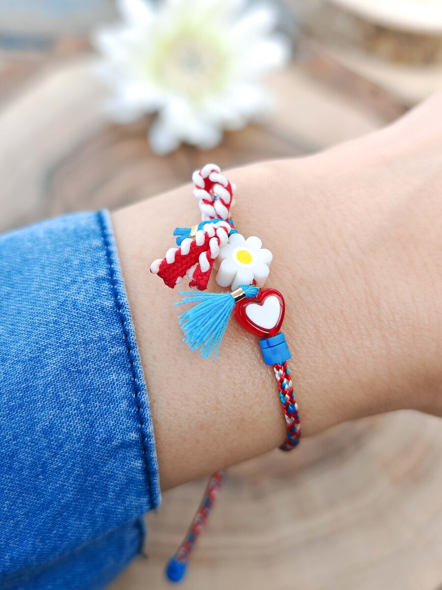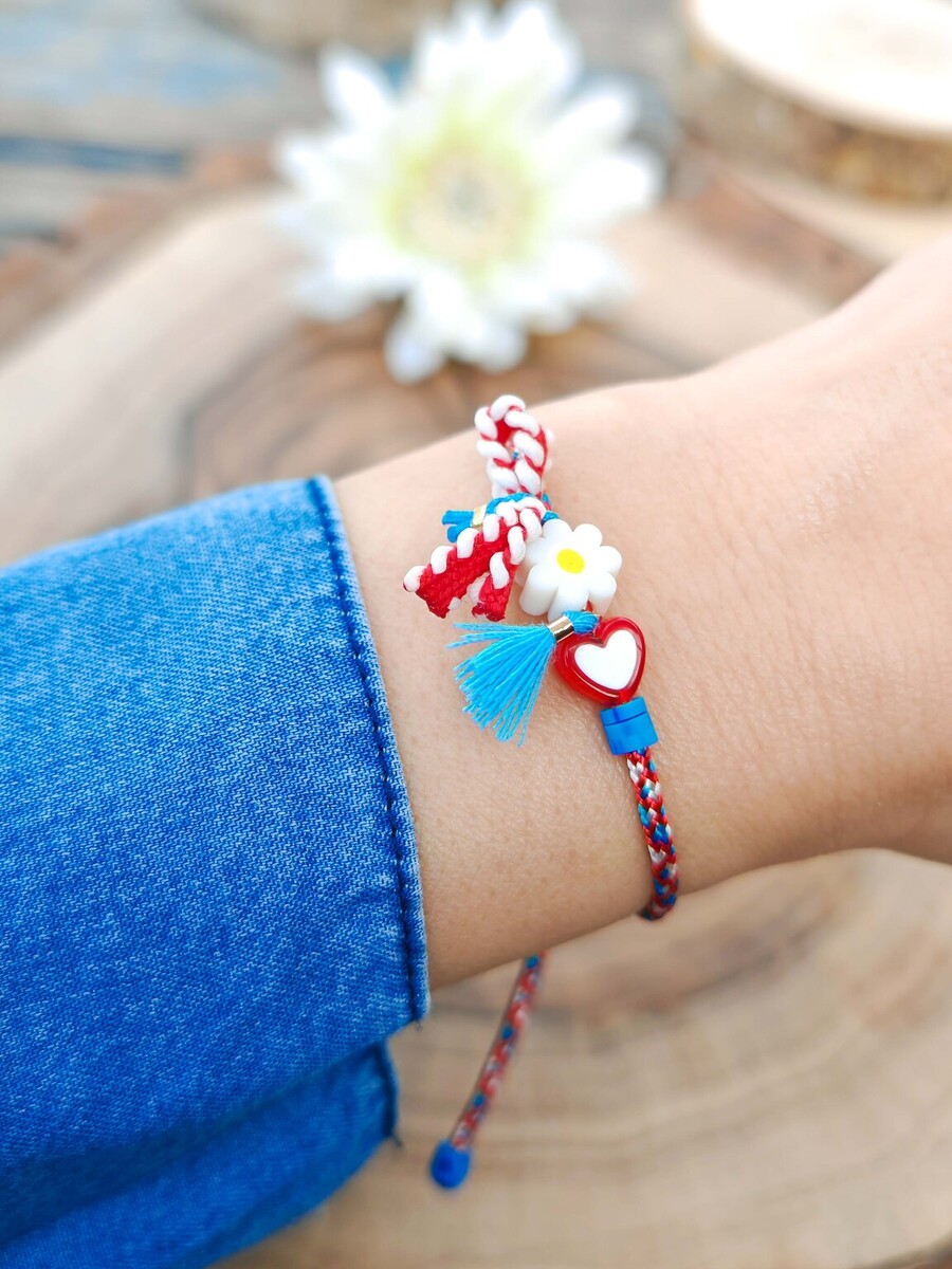 Μαρτάκι γεμάτο χρώματα, με φουντάκι  και φίμο στοιχεία.