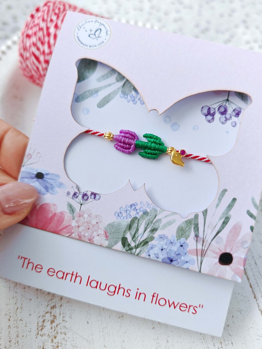 Μαρτάκι με χειροποίητη πλεκτή τουλίπα με την τέχνη του Μακραμέ, μπορεί να γίνει σε ότι χρώμα επιθυμείς.