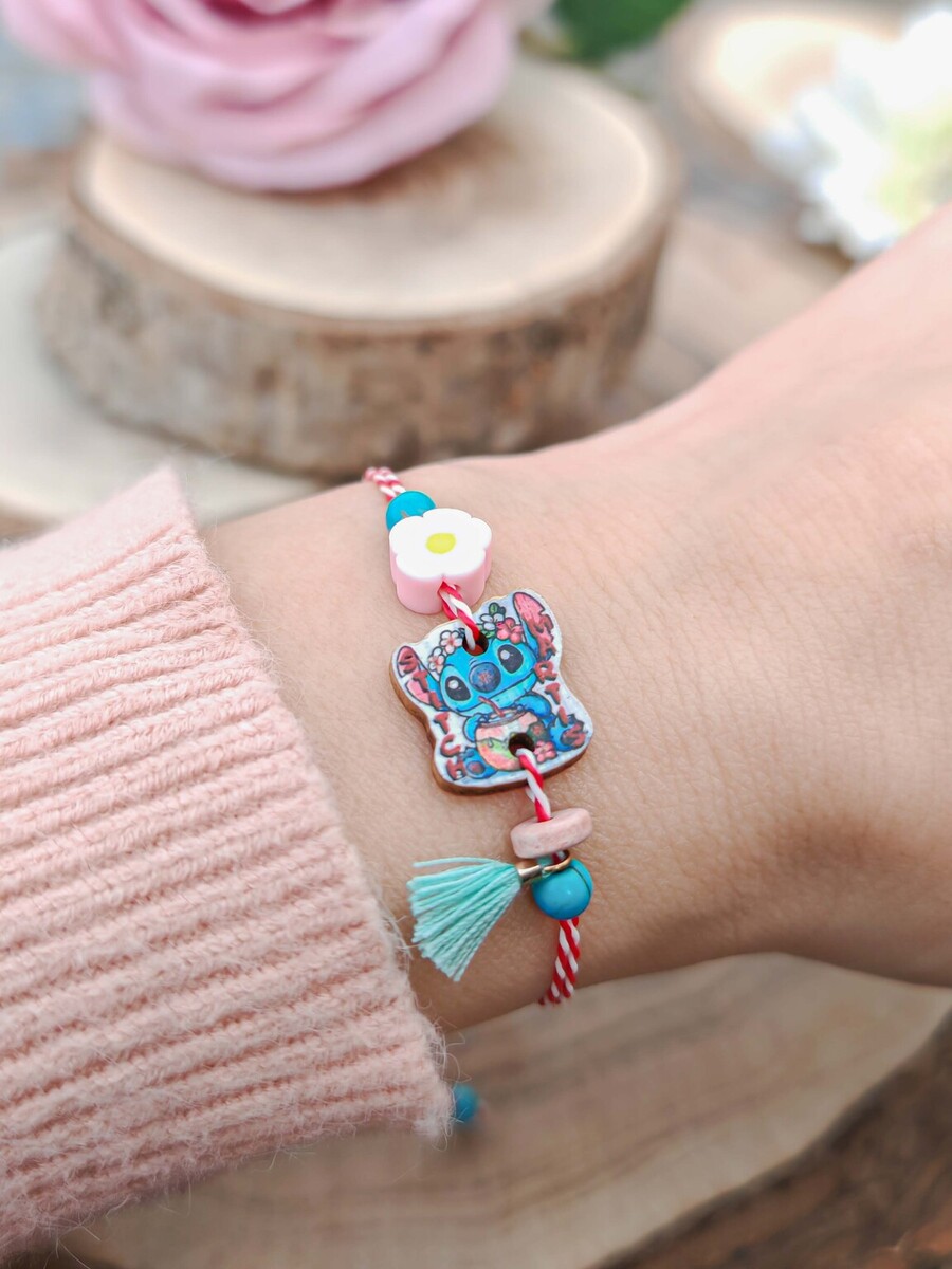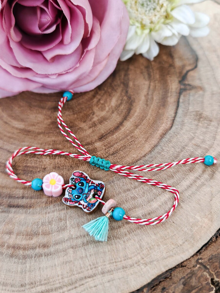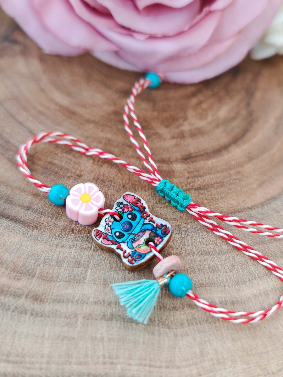Μαρτάκι ξύλινος Στιτς με φίμο λουλούδι και χάντρες χαολίτη.
