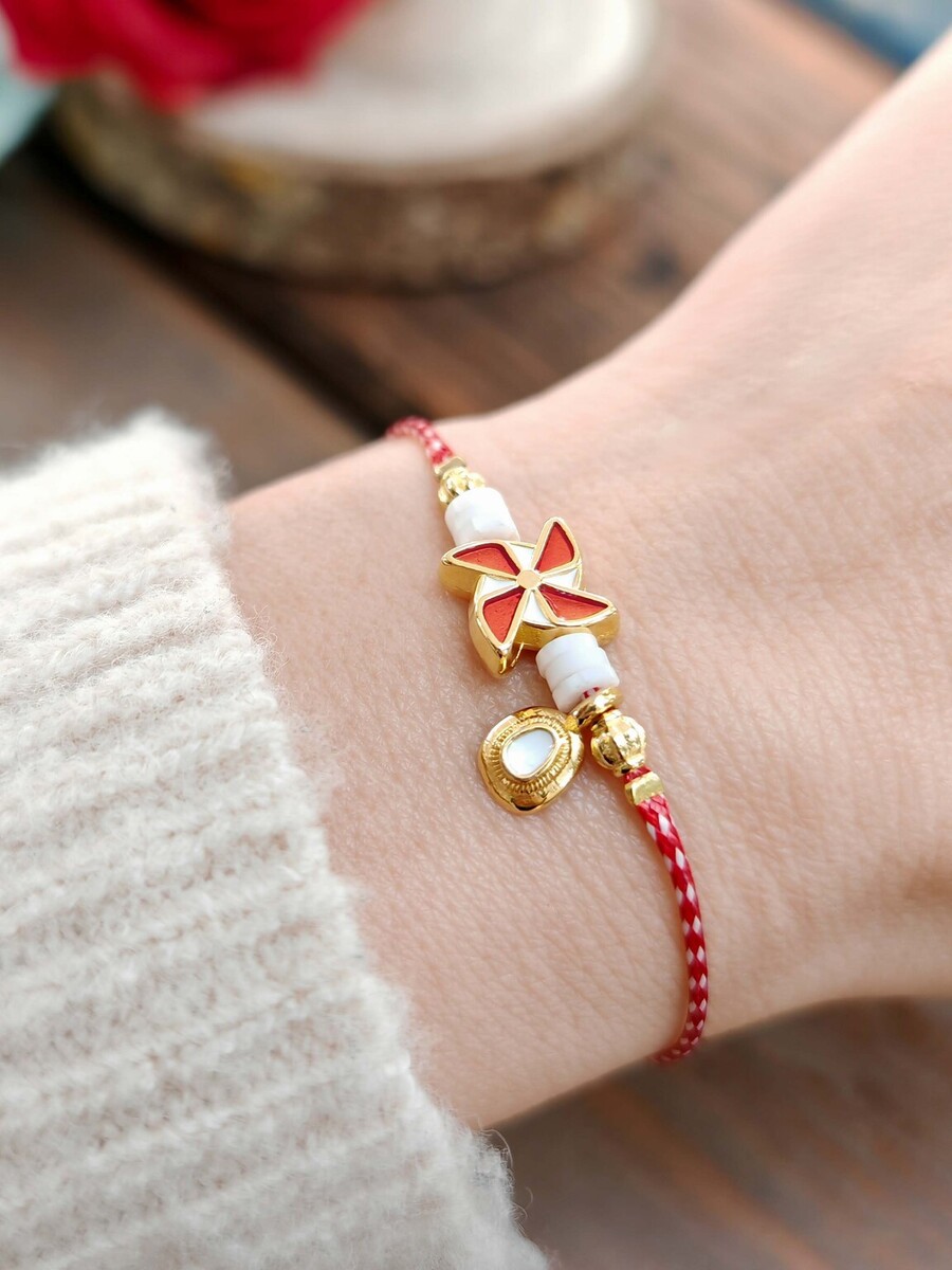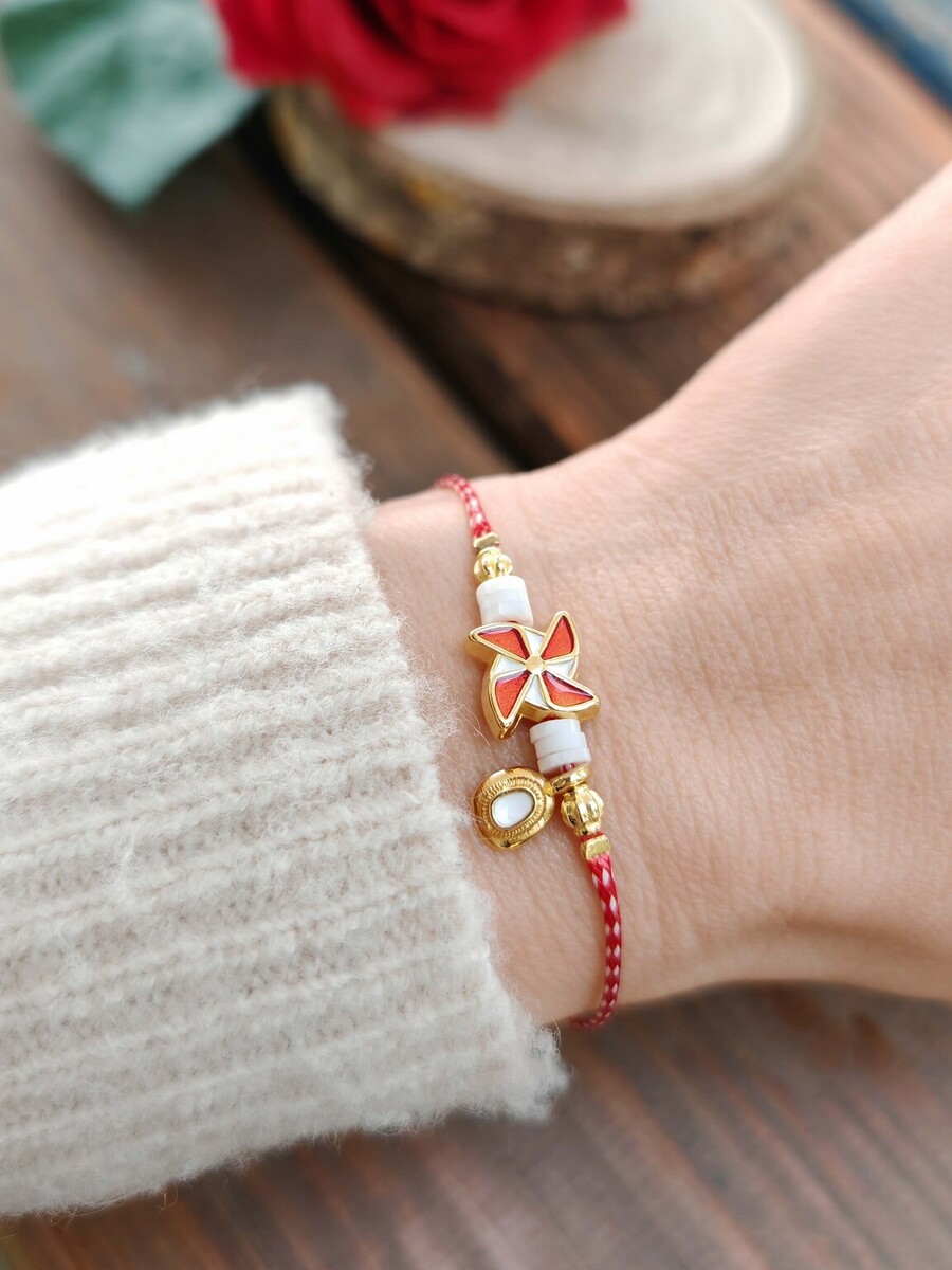 Μαρτάκι έλικας ζάμακ με σμάλτο, ροδέλες φίμο και στοιχείο από ορείχαλκο επιχρυσωμένο.