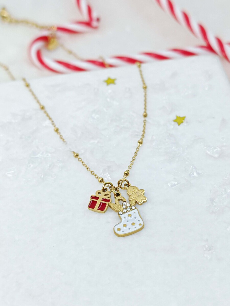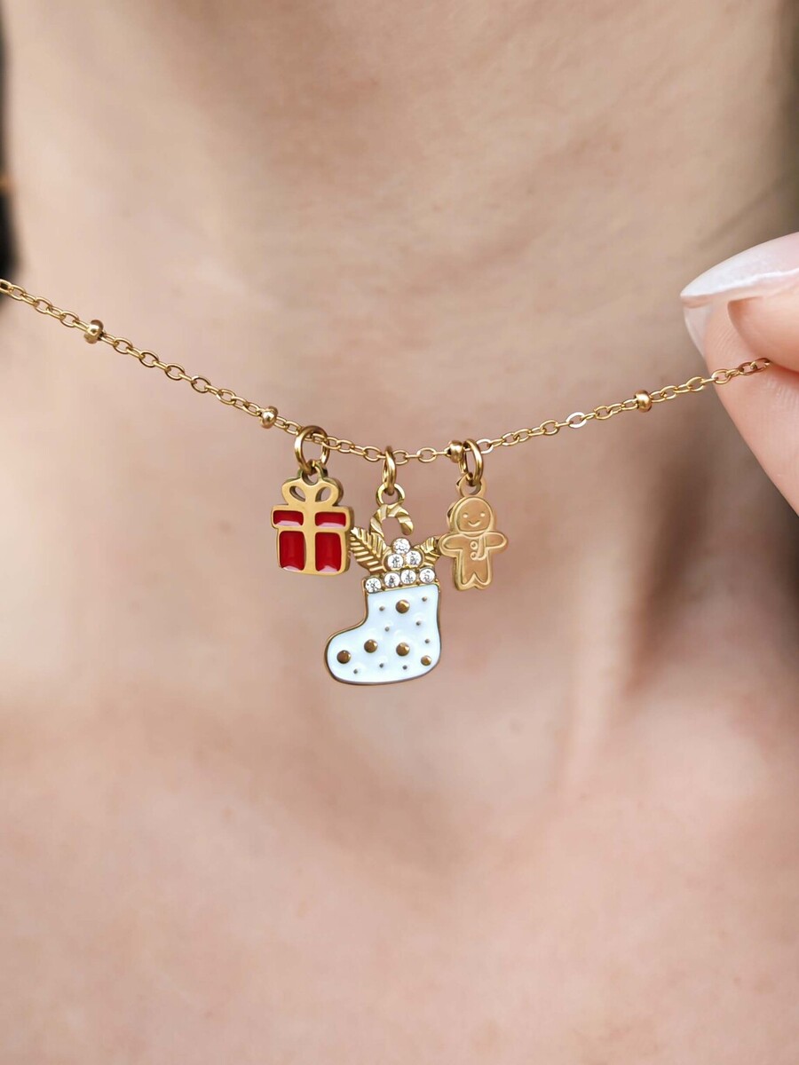 Ατσάλινο κολιέ με 3 κρεμαστά ατσάλινα, μπότα,δώρο και τζιντζερμαν.