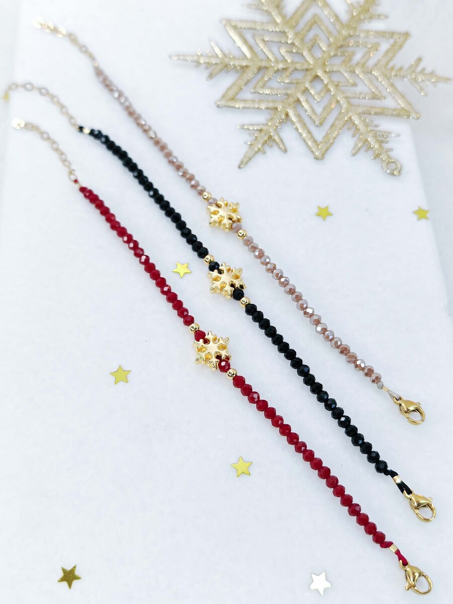 Βραχιόλι νιφάδα από ορείχαλκο με κρύσταλλα και ατσάλινο κούμπωμα με έξτρα επέκταση.
