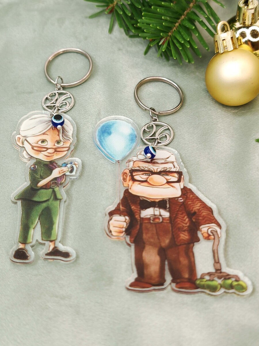 Δύο μπρελόκ πλέξι γκλας με το 2026 και ματάκια, ένα υπέροχο δώρο για τα Χριστούγεννα.