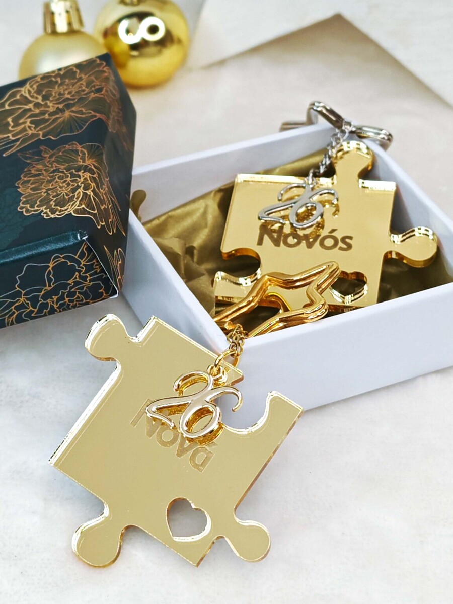 Σετ μπρελόκ πλέξι γκλας νονός και νονά,με ιδιαίτερο μπρελόκ σε σχήμα αστεριού, σε χριστουγεννιάτικο κουτί δώρου.