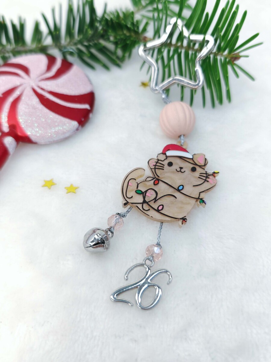 Μπρελόκ με κρίκο σε σχήμα αστεριού με πλέξι γκλας γάτα, κρύσταλλα και μεταλλικό 26, για μία υπέροχη, παιχνιδιάρικη χρονιά